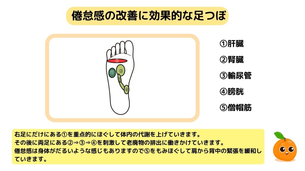 次は【身体がだるい・疲れが抜けない・やる気がでない】などの倦怠感のような症状を緩和していきます。
