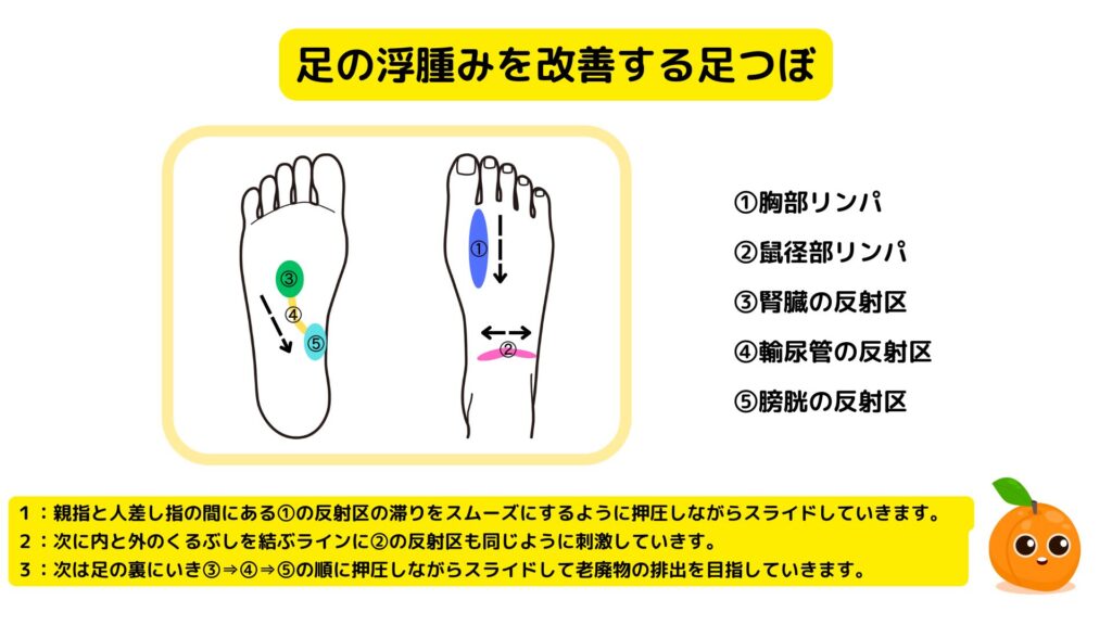 次に浮腫みを改善するために効果的な足つぼを刺激していきます。