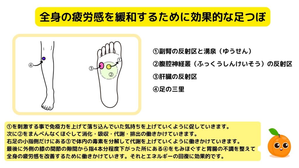 まずは疲労感を緩和するために効果的な足つぼを紹介していきます。